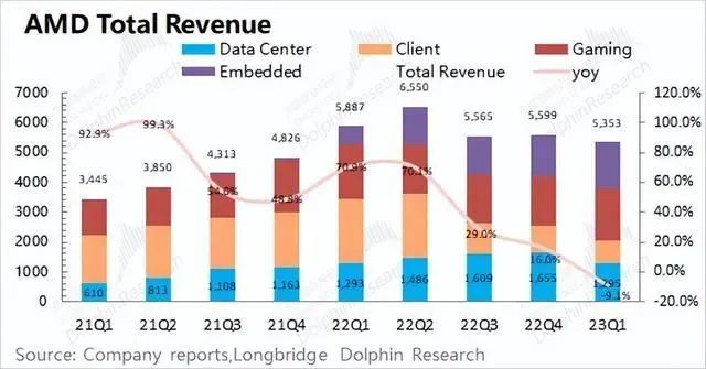 数据中心业务都开始出现业绩下滑的风险,游戏跟嵌入式业务更难撑起AMD公司的业绩了。