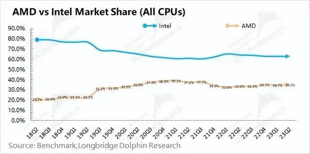在推出Zen架构以后,曾经濒临危机的AMD由危转安,不仅在消费级市场逐渐赶上英特尔,同时在服务器市场拿下近20%的市场份额。