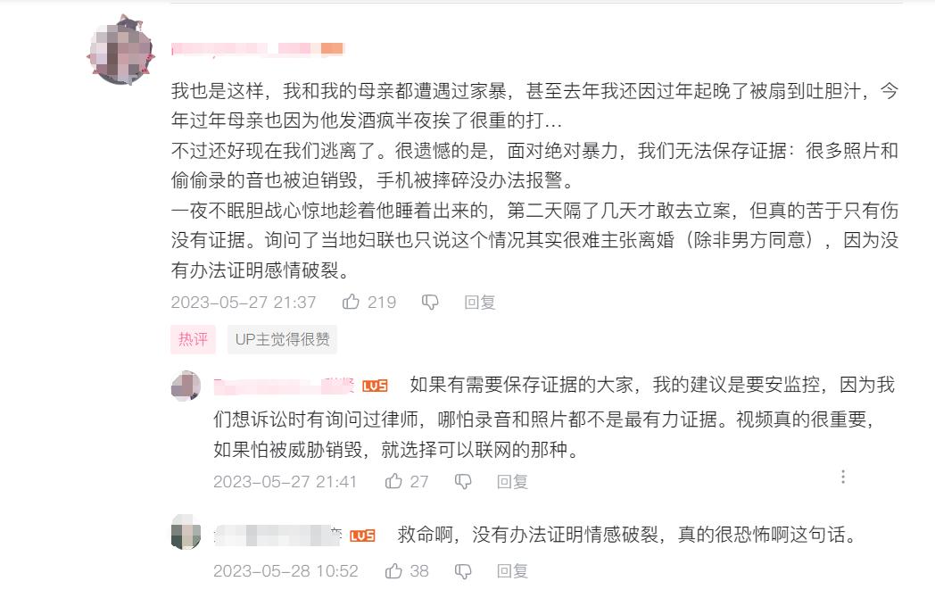 我之前在B站做了一个反家暴的视频,反响很好,有上百个有家暴经历的网友评论,问该怎么做。我也远程干预过几个孩子的自杀危机。