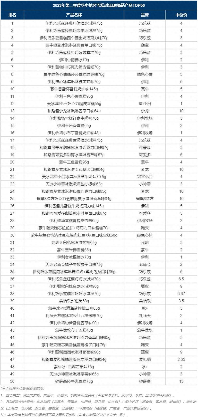 不过值得一提的是,雪糕类产品价格降温是今年市场里一个较为明显的趋势,根据Food Talks联合马上赢发布的2023年第二季度华中地区雪糕/冰淇淋畅销榜单显示,今年销量表现较好的产品均集中在3-5元的价格区间,钟薛高售价13元的轻牛乳雪糕仅排在了榜单最后一位。