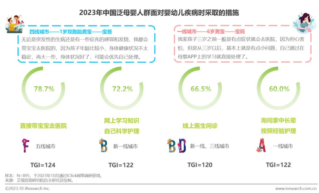 网上学习知识、科学护理成为泛母婴人群在婴幼儿疾病时采取的TOP2措施,母垂平台的高专业度为其提供内容引导
