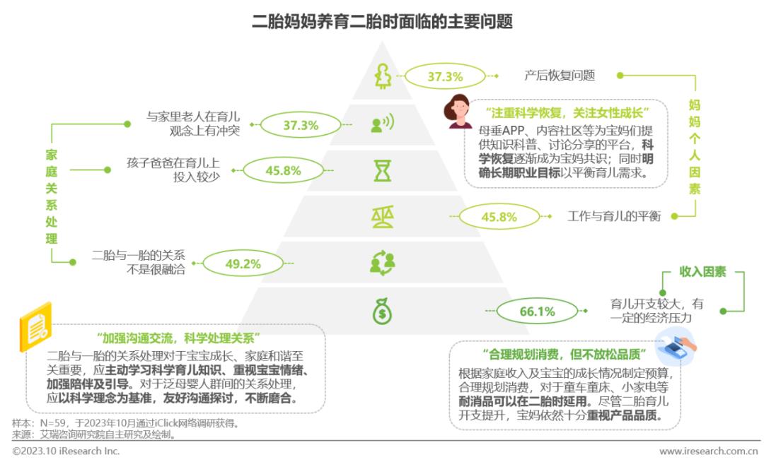 二胎妈妈面临收支、关系处理、个人因素三类问题,对应处理方式为合理规划消费、科学处理关系、关注女性成长