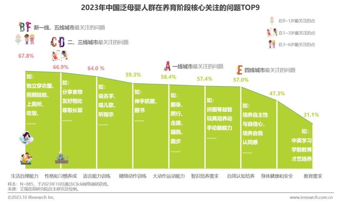 养育阶段需求多样化,超六成泛母婴人群尤为关注生活自理能力培养、性格习惯养成及语言能力训练