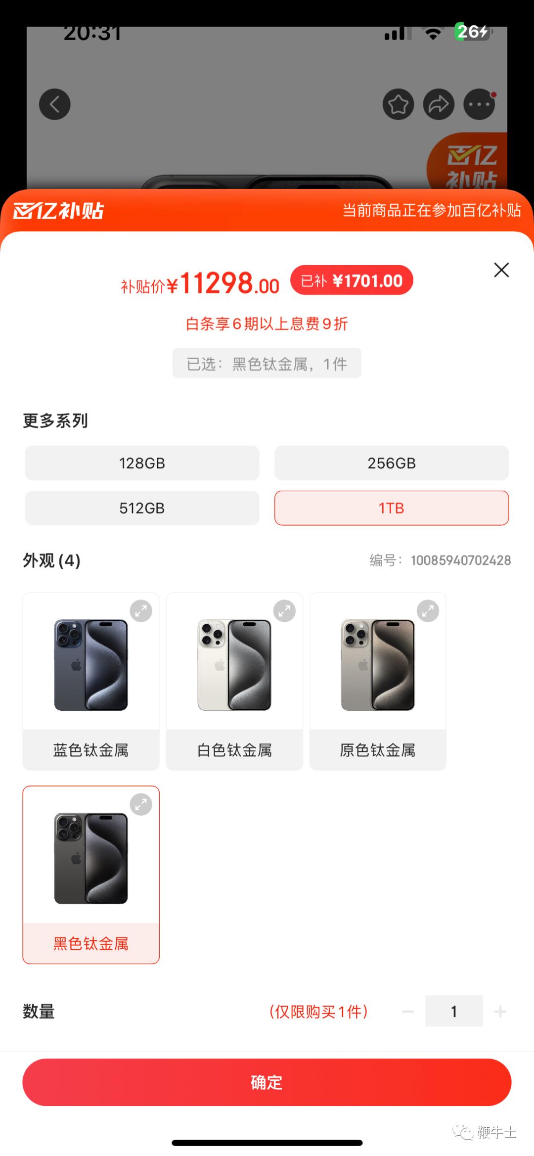 京东,iPhone 15 Pro 128g最低售价7899,下跌100元,256g下跌450元,元iPhone 15 Pro Max 256g最低售价9699元,下跌近300元,512g最低售价11249元,下跌750元,1T最低售价11298,下跌高达1700元。