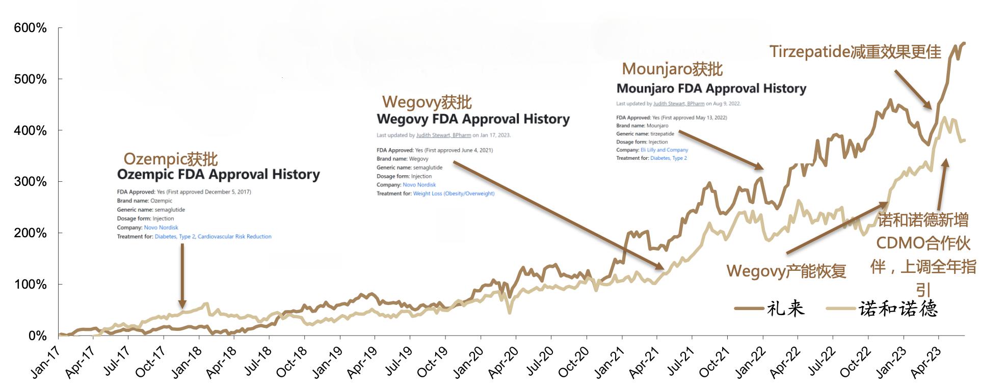 而在以上数款 GLP-1 药物获批上市的同时,其给各自公司带来的股价催化效应也十分显著: