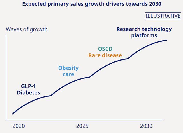 这样的背景在医药行业中十分重要,因为科学知识的探索和进步需要几代人的工作不受干扰地积累,且尽量避免即时交付的压力。如今,制药行业的趋势是,巨头的主要增长动力源于对竞争对手的收购和获得单个产品的生产/销售许可;而诺和诺德是极少数能够实现内部有机增长的大型制药公司。尽管如此,与同行相比,诺和诺德的研发支出并未超支(下文会详细分析)。