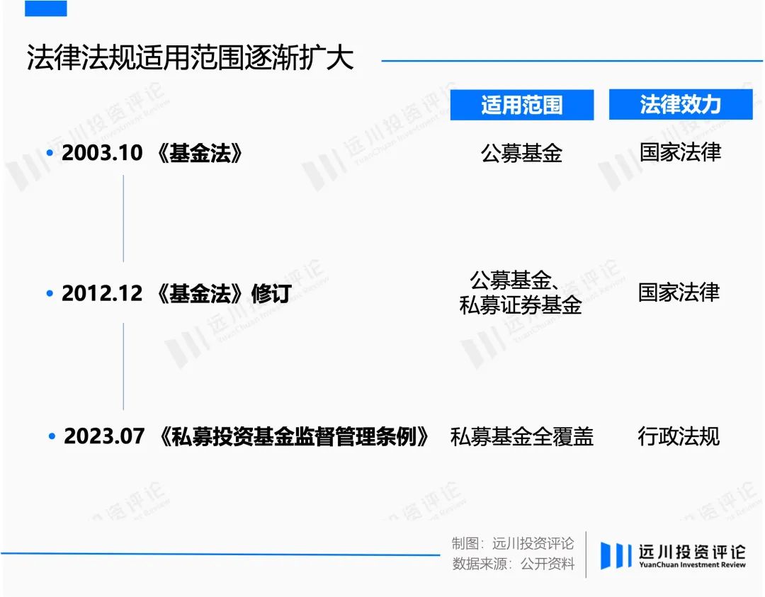 2003年10月,全国人大常委通过了《中华人民共和国证券投资基金法》(以下简称《基金法》)。这部具备行业最高法律效力的《基金法》,在实施的最初几年里,仅适用于公募基金,并明确规定「担任基金管理人,应当经国务院证券监督管理机构核准」。