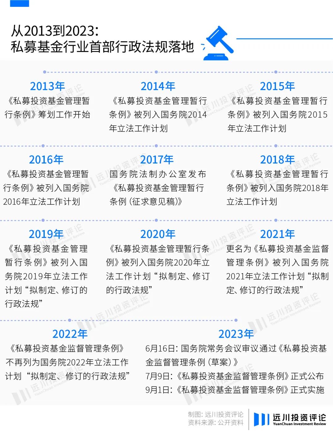 2023年7月9日,花费了十年之久的私募行业首部行政法规《私募投资基金监督管理条例》正式发布,一共7章62条,对强化监督管理和处罚力度作出了大篇幅的具体规定。