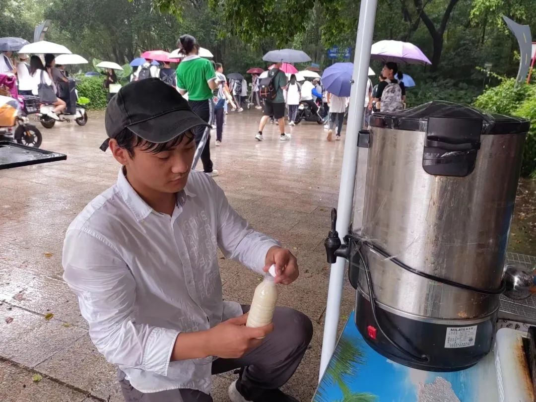 叶树林在大学城卖豆浆油条 曾思怡/摄
