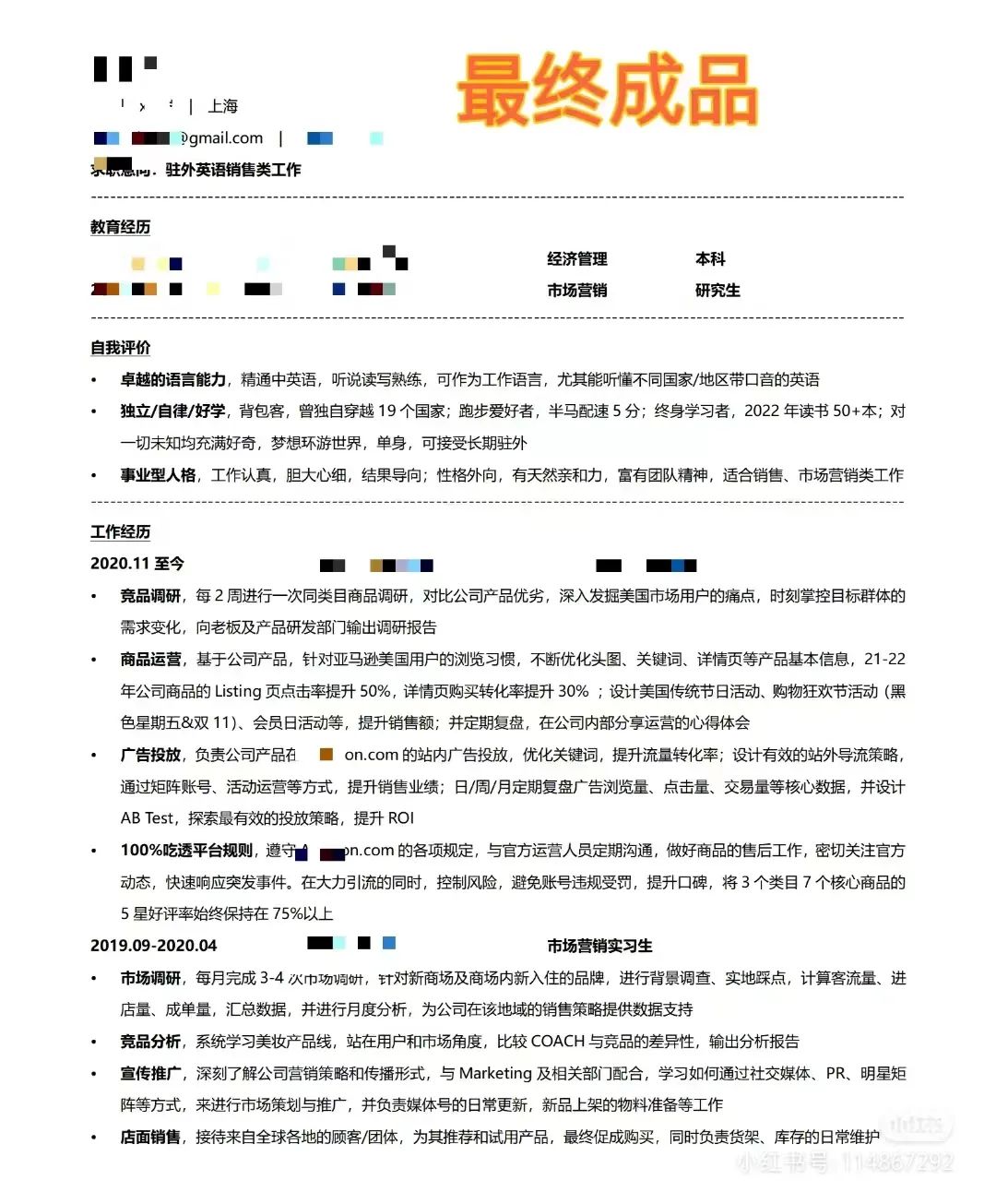她做过职业猎头和HR,在工作的过程中发现,一些人工作经历特别突出,但简历却写得不痛不痒。这使她看到了商机,回去开了一家做简历优化生意的网店。