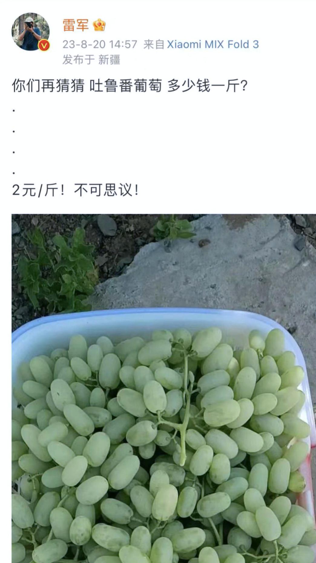 就连小米董事长雷军都在微博感叹,新疆瓜果的“不可思议”。