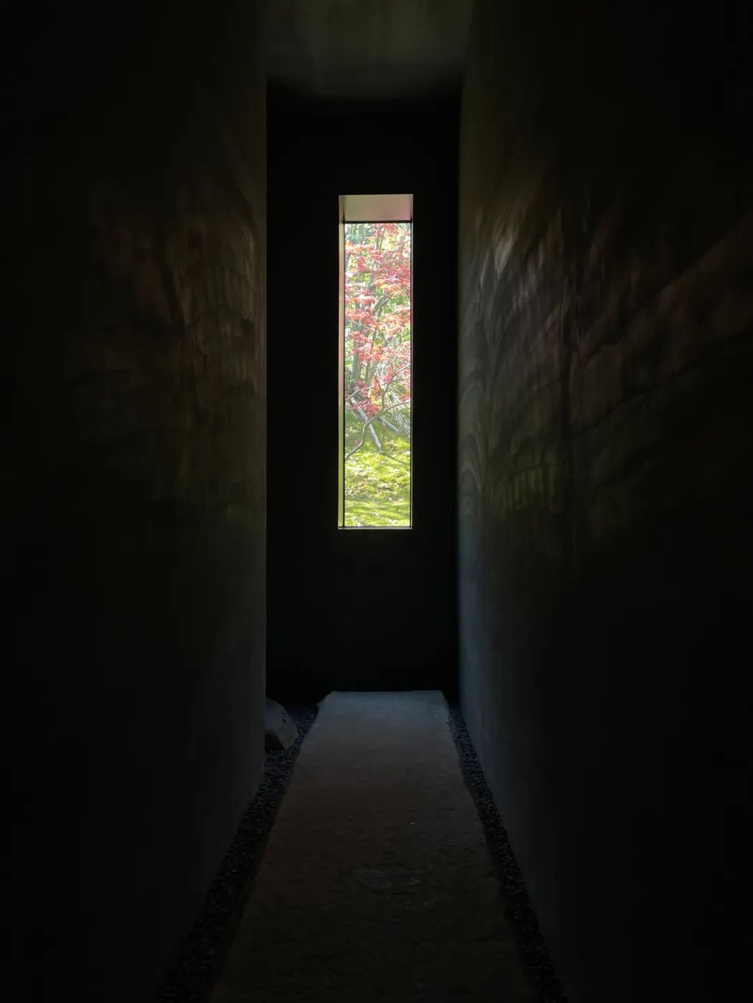入口对面开了一个很细的竖条窗,是一个竖轴的宋画的状态,窗外种了一棵红枫,一进门就会看见,仿佛天成的一幅画。