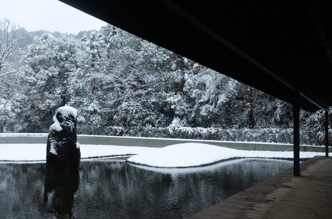 进入茶室的路径也颇有讲究。长的石板路引导,从窄条的入口进去,在一个回环当中把光线压暗,仅仅通过室外的光线来作为引导,转折几次,豁然开朗。