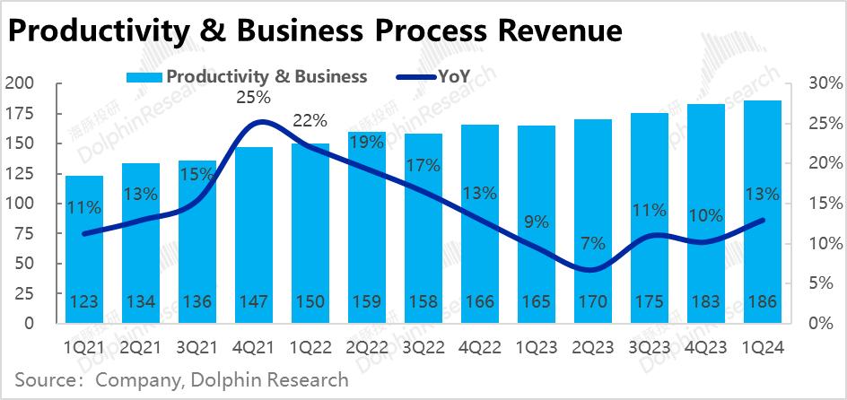 因此,本季生产力和商务流程(P&BP)板块的整体营收达到186亿美元,同比增速同样上升2pct,也出现了回暖迹象,且高于先前指引和市场预期的183亿。