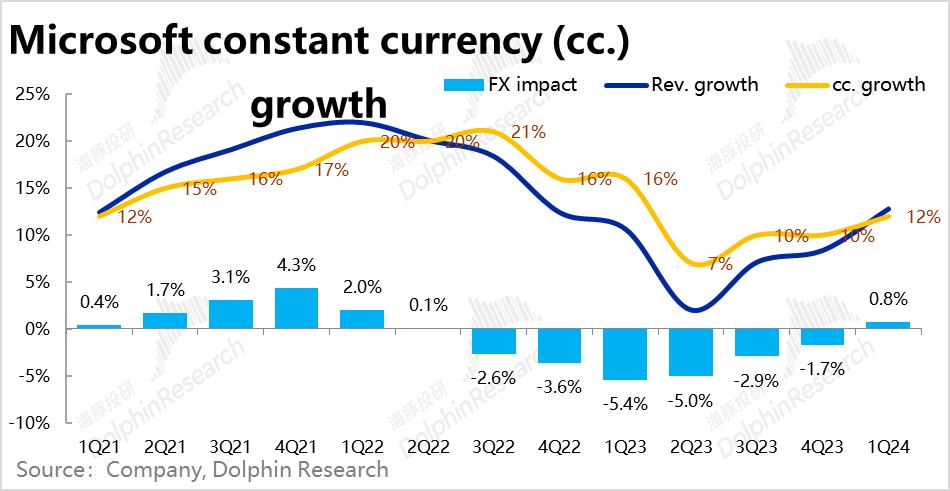 另外,板块内非Azure业务(包括SQL server,Visual Studio,企业咨询服务等)的营收增速同样出现了明显的反弹,止跌回升到了约2%。这同样指向企业缩减云计算相关支出的趋势已经反转。