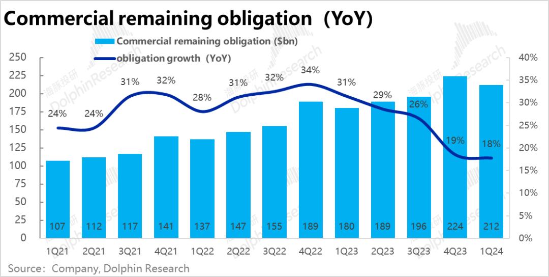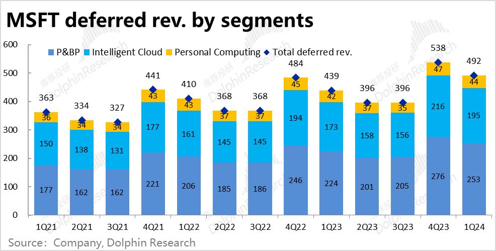 综上所述,微软各业务当季的营收多数出现了回暖迹象,那么反映未来增长的各种待确认的“余粮“数据表现如何?