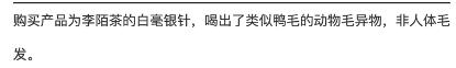 此外,在新浪旗下消费者服务平台黑猫投诉平台上,有关于“李陌茶”的投诉主要集中在“发现茶饼内部有头发”“喝出疑似鸭毛异物”“伪造食品生产日期”等等。