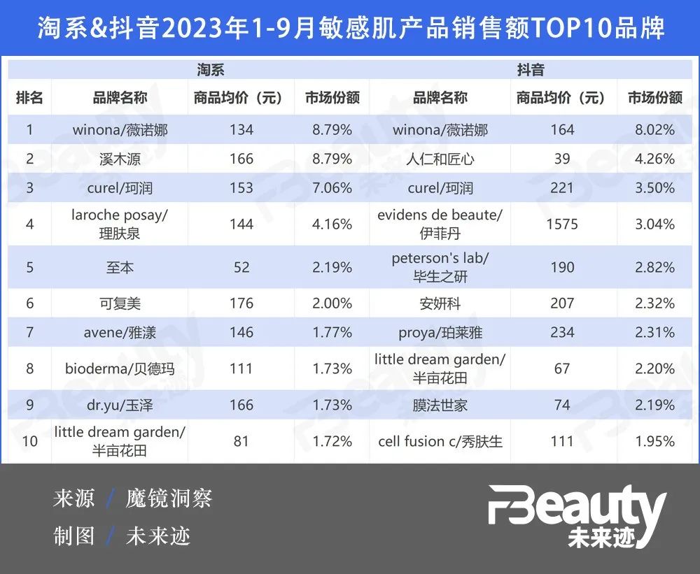 值得注意的,这些品牌的突围靠的并不是充当外资品牌的“平替”,而是在“敏感肌护理”层面,从产品、价格、品牌声量等多个方面已经能够与国际品牌抗衡甚至超越国际品牌。