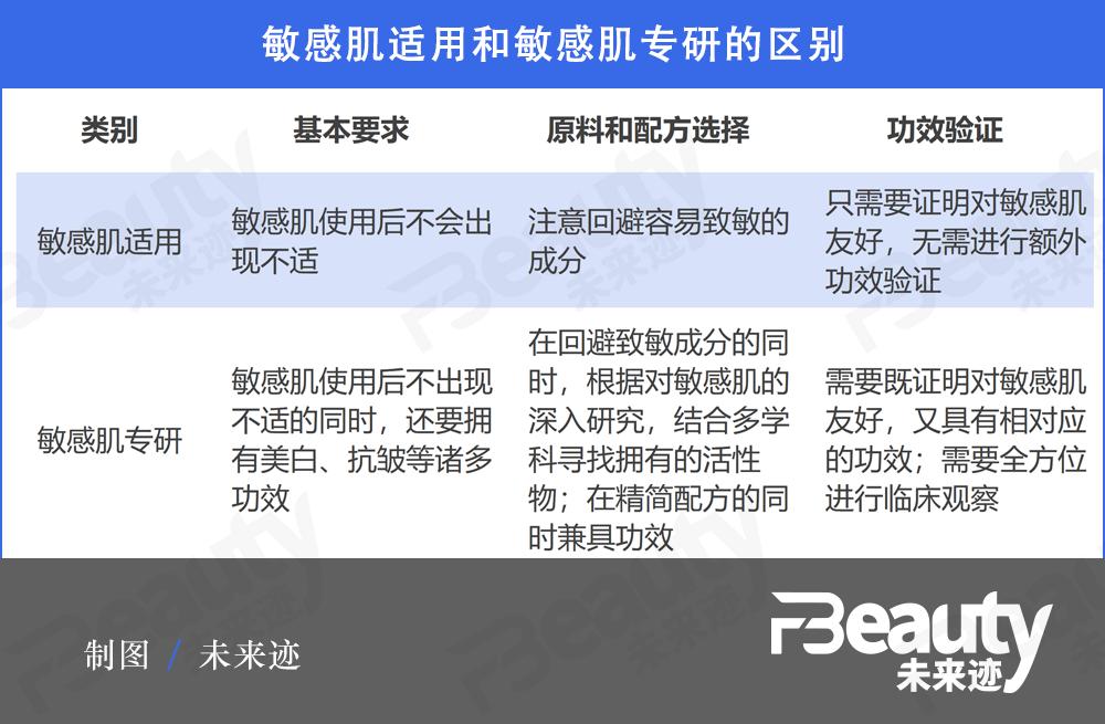 敏感肌“适用”和敏感肌“专研”,两字之别但对产品的要求却有云泥之别。