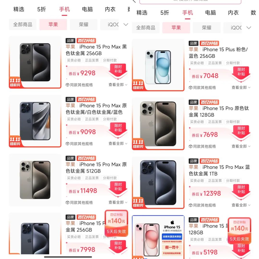 一个不可忽视的事实是,即使是“降价促销”后,iPhone15的价格依旧非常昂贵。以iPhone15 Pro Max为例,目前“跳水”后售价依旧高达9000元以上,最高配版本“直降1500元”后售价仍超过12000元。