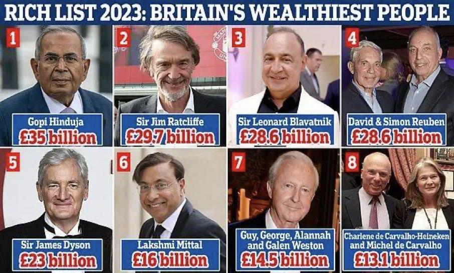 在《星期日泰晤士报》发布了的2023年英国富豪榜上,前六名里有三个出生在印度,其中排名第一的戈比·辛杜贾家族还是蝉联的英国首富。