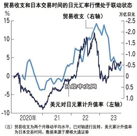 那么,日本交易时间的汇率行情受到了什么影响?摩根大通的外汇策略师齐藤郁惠指出:“日本(交易)时间的日元行情基本跟日本贸易收支动向联动”。如果贸易赤字扩大,就会美元升值日元贬值;如果贸易收支改善,就会美元贬值日元升值。