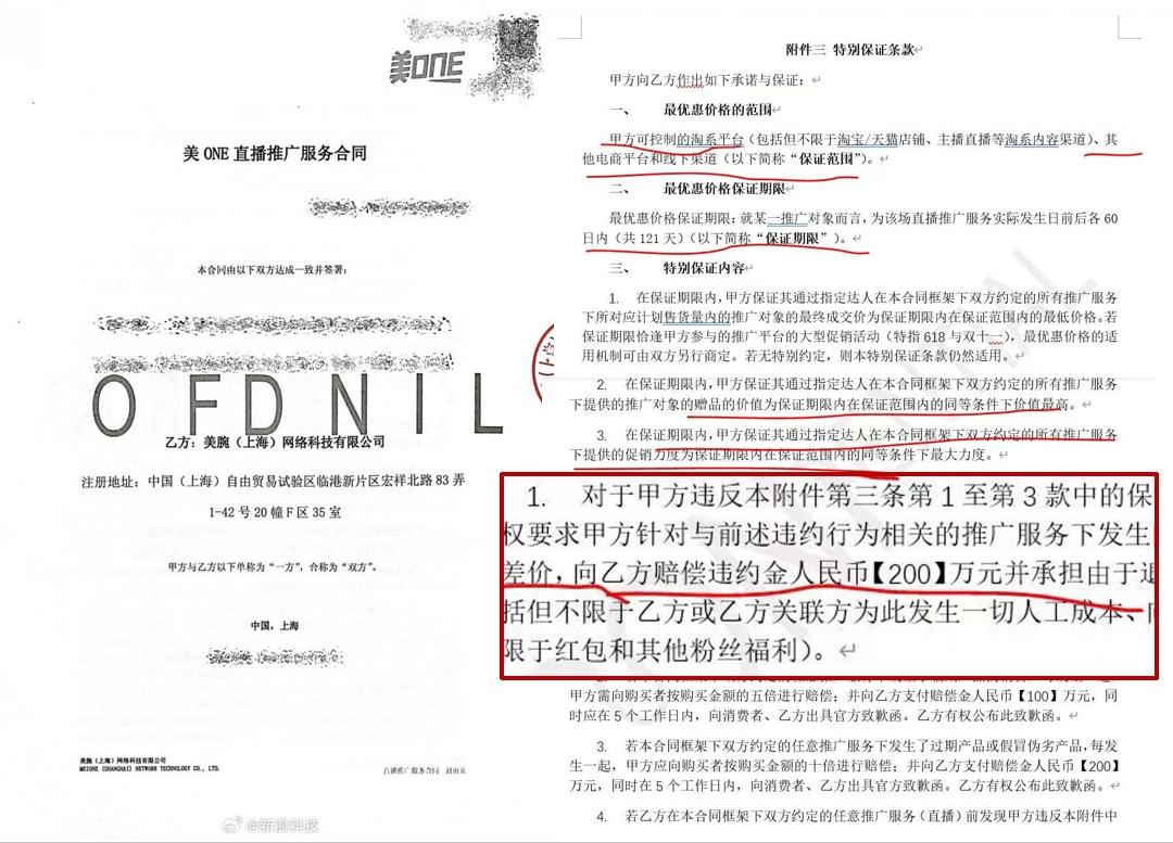 我对于这个文本其实存疑。按照现在的监管强度和舆论环境,美ONE对接那么多的品牌,还敢跟每家白纸黑字地写上要赔几百万这种话,相当于吃了熊心豹子胆。