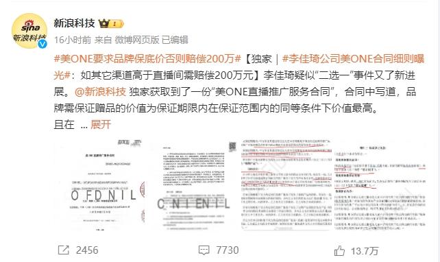 18点49分,又是新浪科技,发出一张写了底价就要赔200万的美ONE合同推广。