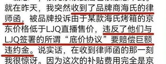 怎么关联起来的?看上去是京东“褚三峰”直接说的“违反了他们与LJQ签署的所谓‘底价协议’要赔偿巨额违约金”,仔细看看,话头都是海氏亲手递的。