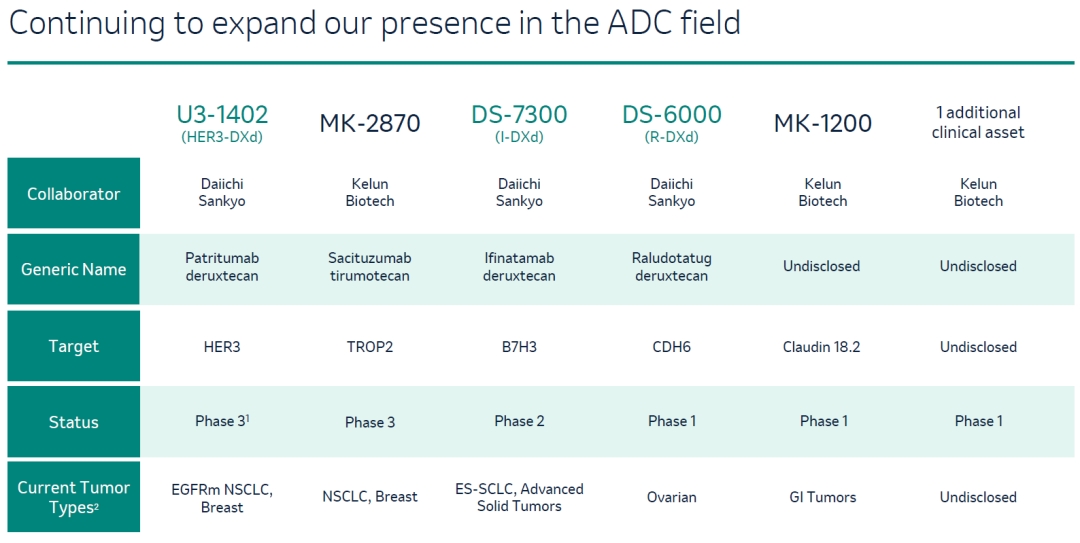 默沙东2023年ESMO主要展出的ADC产品