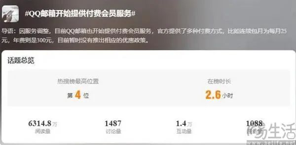 就在#QQ邮箱开始提供付费会员服务#这个话题冲上热搜后,QQ邮箱方面站出来回应称,开始提供付费会员服务这个话题可能让有些用户误会了,其收发邮件等基础功能完全不受影响,而且基础版已经提供了16GB邮箱免费容量,可以满足大部分用户的使用需求。