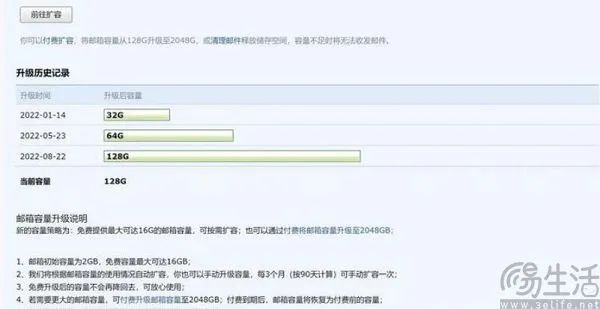 自诞生以来,QQ邮箱从未有过收费的迹象,甚至于它还曾提供过免费扩容福利,用户在注册邮箱后可每90天手动免费扩容一次,扩容后邮箱的存储容量会翻倍。同时当用户使用了50%的容量后,邮箱容量同样也会自动翻倍,在某种程度上可以说是实现了“无限容量”。