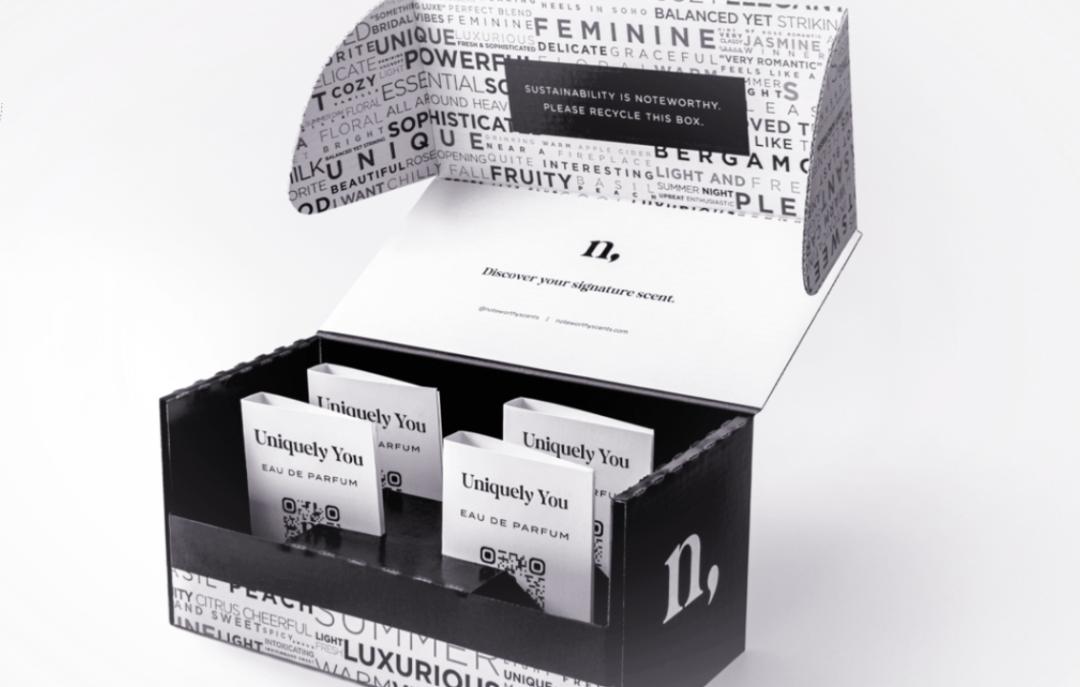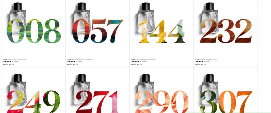 Noteworthy 同样是一个定制化品牌,用户同样通过完成测试题向调香师传达自己的喜好。Noteworthy 认为,每款香水的包装都会影响用户对香味的第一判断,所以就只用透明瓶子盛装香水,作为区分,再给香水一个编号。这样的极简包装也能保护环境、降低成本。