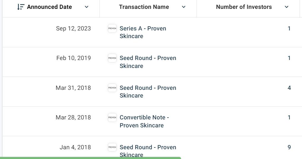 两个人的护肤理念类似,于是共同创立了 Proven。从成立以来,Proven 共融资 5 次,投资者中包括 YC、Soma Capital、UpHonest Capital 等,最近的一次就在刚刚结束的 9 月,A 轮拿到了由 NewH2 Ventures 领投的 1220 万美元。