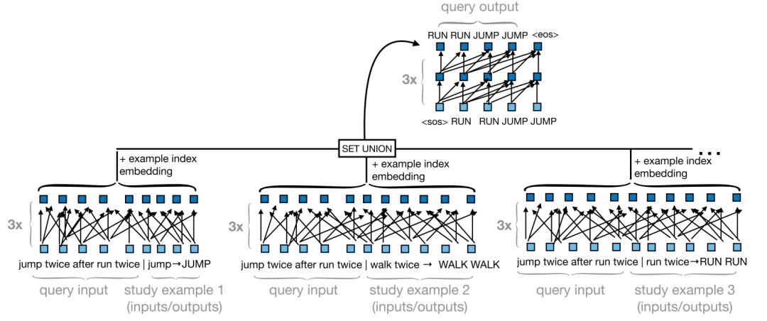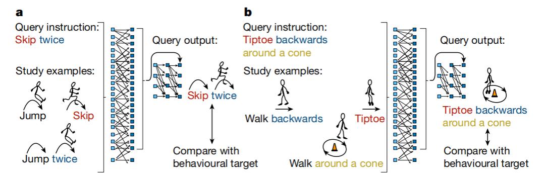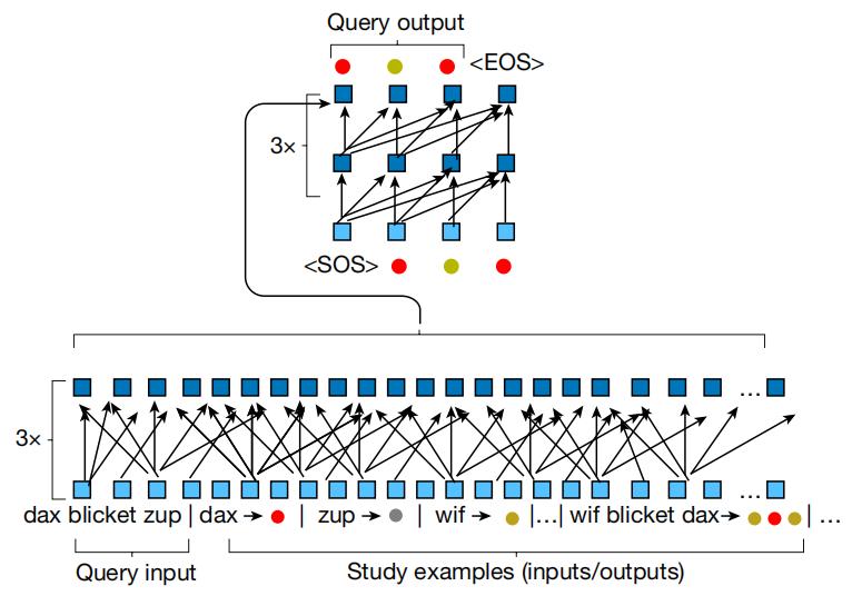 在机器学习的语境中,当泛化使新的情节相对于训练情节处于分布中时,元学习策略会成功,即使特定的测试项目相对于情节中的研究示例是超出分布的。然而,仅仅依靠元学习不会使标准网络能够泛化到相对于元学习期间呈现的情节而言又超出分布的情节。当前架构还缺乏发出新符号的机制,尽管可以通过附加的指针机制来引入通过研究示例引入的新符号。