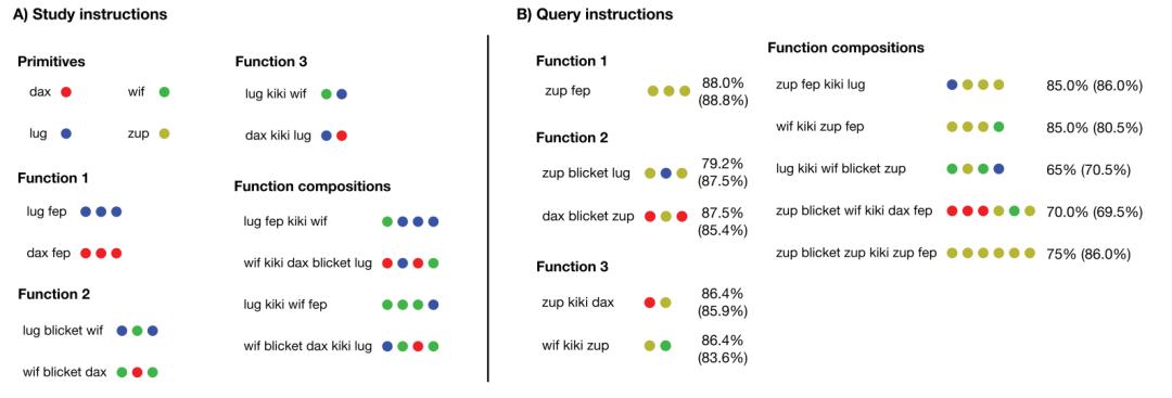 人们善于学习新概念,并将它们与已有概念进行系统组合。例如,一旦一个孩子学会了如何跳跃,他们可以通过组合技能理解如何向后跳或绕锥形物跳两次。