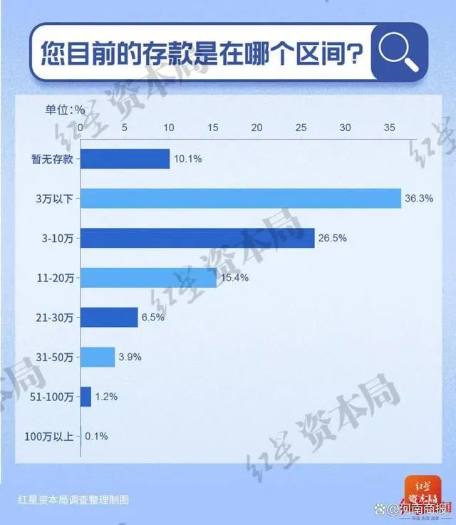 事实上,存款区间和这一数值相近的年轻人占大多数/图源:红星资本局