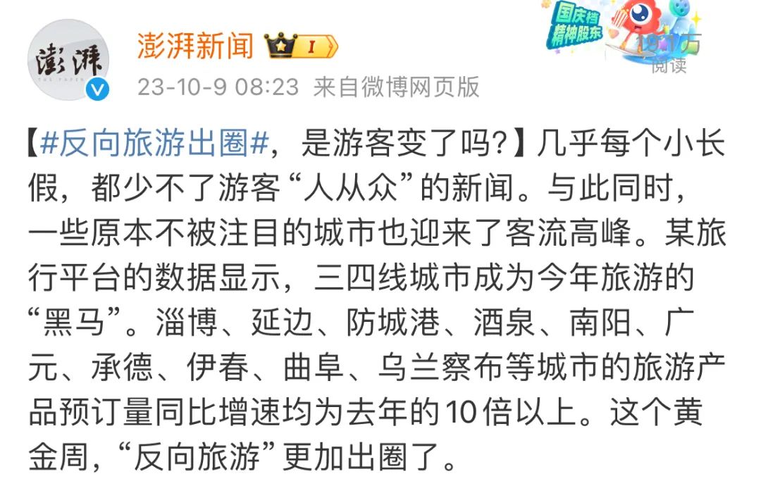 在过去不久的国庆假期,全民出游热成为备受关注的新闻。 热归热,但整体的旅游趋势,却呈现一种“降级”“平替”的趋势。