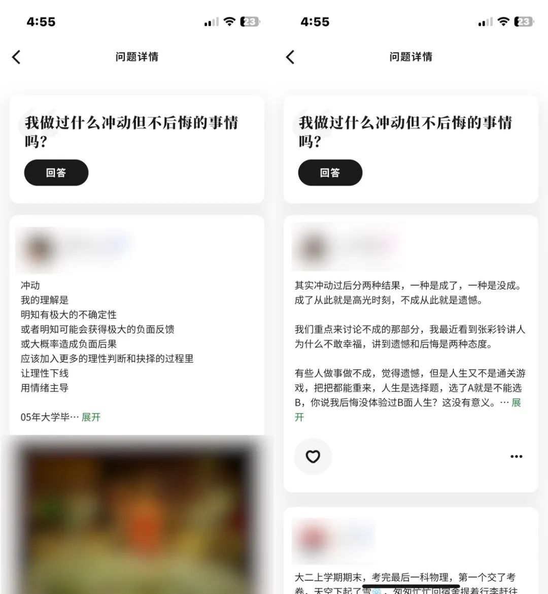 如果对方回答少,会面临话题枯竭的问题,让人无从下手。当然,能不能聊得下去都是要决定于双方愿不愿意聊,可是在极其狭窄的切入点面前会对这个想法有很大的负面影响。用户由此获得的正向体验在认真写深度回答付出的精力面前相形见拙,是一种强烈亏损感。