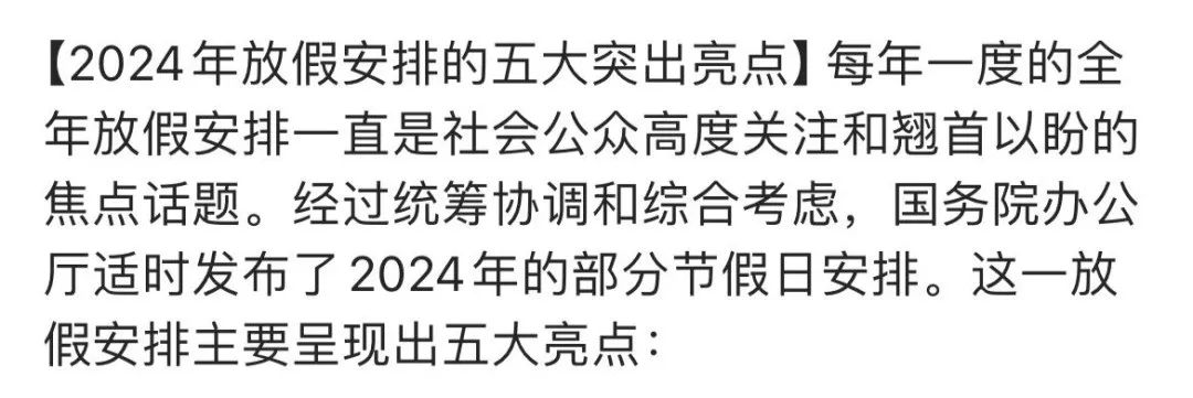 昨天,2024年的假期安排一公布,就成了朋友圈最大的话题。