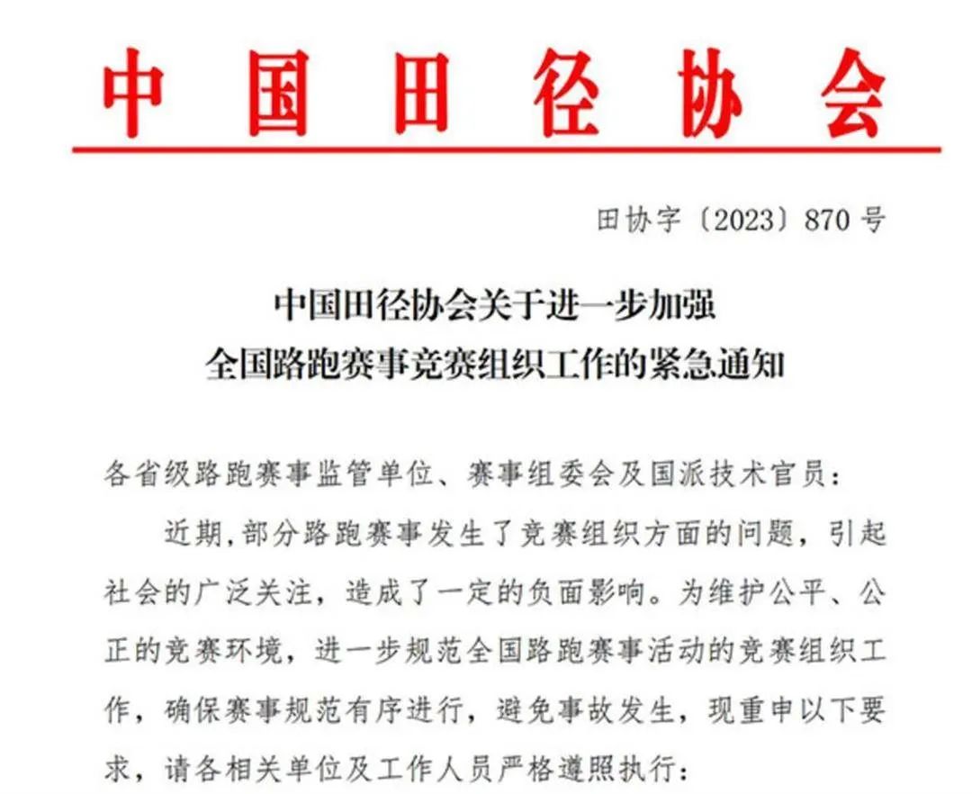 通知还强调,要求各路跑赛事组委会,严格遵守路跑赛事比赛规则、组织标准和竞赛规程。规范路跑竞赛组织各环节工作,特别是起终点管理、计时系统、流线秩序等关键环节和点位的工作。赛事的其他配套活动、各类展示体验等不得影响比赛的正常进行。