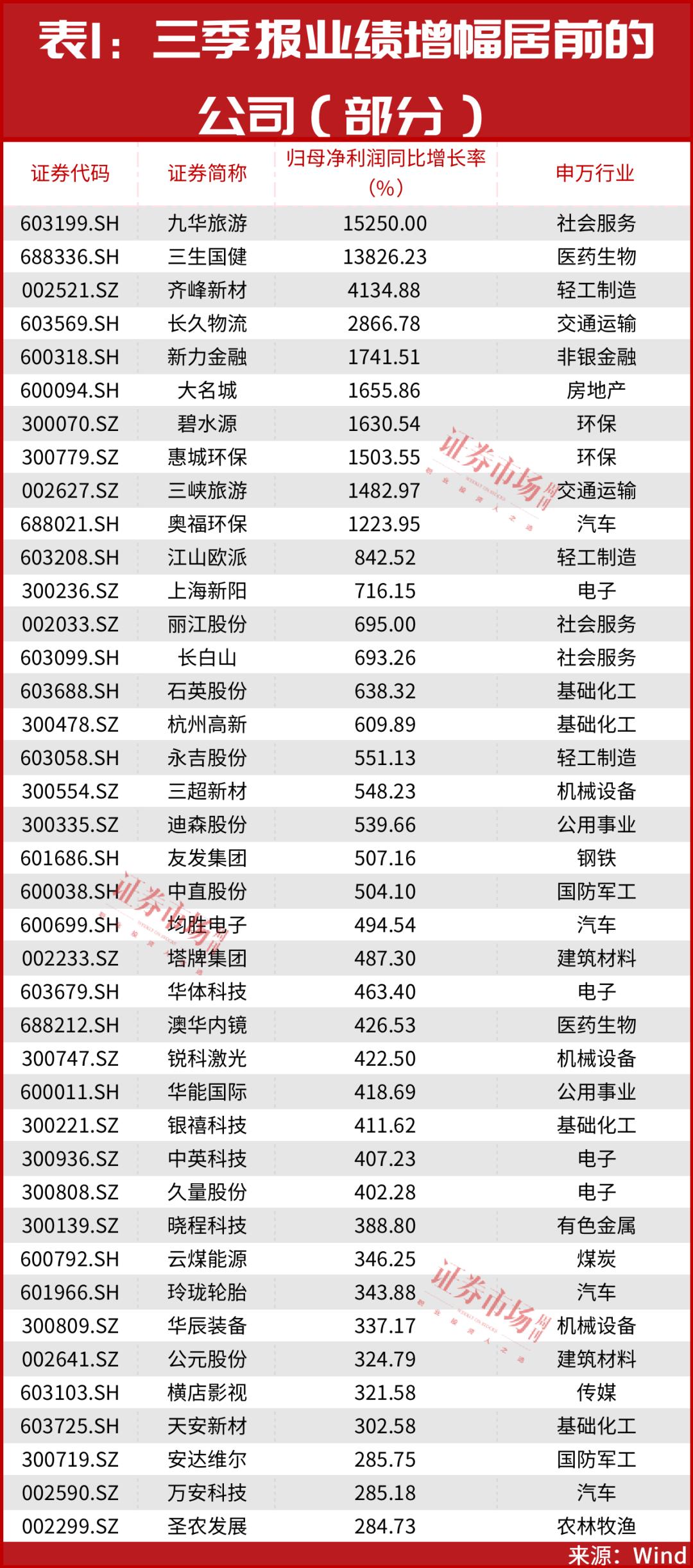 上市公司三季报密集披露,多股因业绩大幅增长收出涨停板
