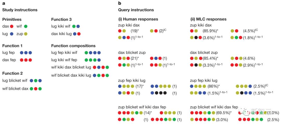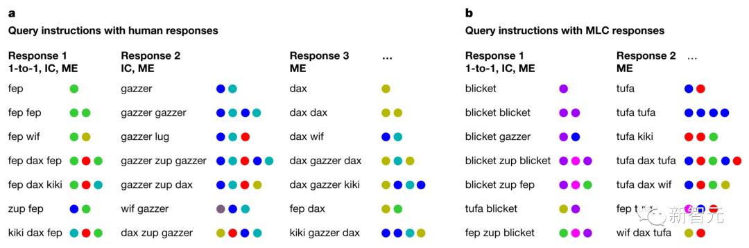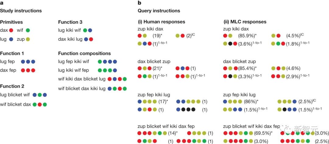 为了证明MLC的能力,研究人员在相同的系统泛化测试中并排对比评估了人类和机器的能力。