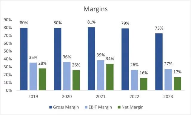该公司的利润率在过去几年中略有下降,但截至最近一个季度,净利润同比提高了约 200 个基点,而营业利润率保持相对稳定。毛利率同比也略有下降,这不是一个好兆头,但是,我倾向于对季度报告持保留态度,因为由于周期性,这些报告确实会波动更大。我必须等待全年业绩才能看到利润率的发展情况。