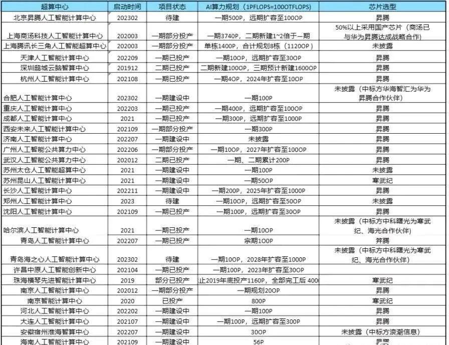 并且根据网络上流传的一张图片显示,中国人工智能超算中心除了未披露,基本都是昇腾,据称在新一轮芯片限令后,华为30-40%的芯片产能要留给昇腾集群,其余是Kirin。