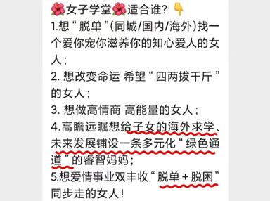在国内,有不少号称“女子学堂”的培训机构,近期打出标语号称:只要加入线上学习,就能帮你找到合适的外籍男性。