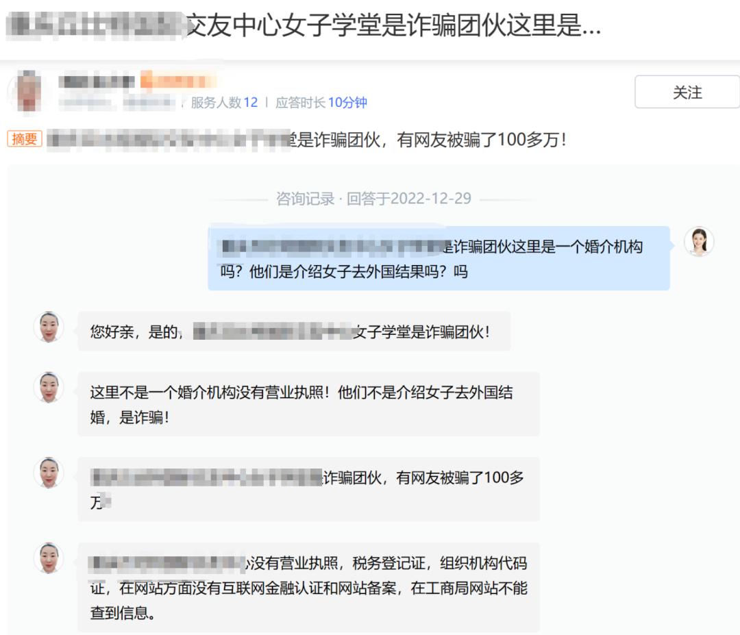 此外,在网络平台上通过直播的形式,“女子学堂”不断给低认知的中国离异女性灌输不良价值取向,误导她们物化自己,贬低国内男性,哄抬外籍男性。