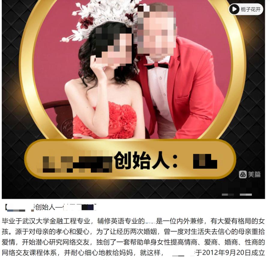 再后来,她把自己的“成功经验”转化为他人可借鉴的课程,以19800元学费的“情商提升课程包”兜售给和她境遇相似的女性。