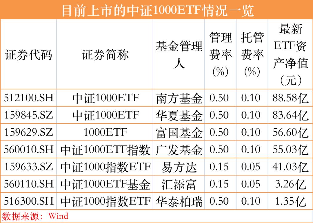 通过此次降费,易方达中证1000ETF的综合费率降至0.2%,与汇添富中证1000ETF同处最低水平。中证1000ETF联接基金的费率最低者也被易方达、汇添富包揽,两者的综合费率也同为0.2%。