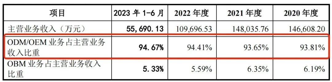 报告期内,香江电器ODM/OEM业务占主营业务收入比重分别高达93.81%、93.65%、94.41%和94.67%。